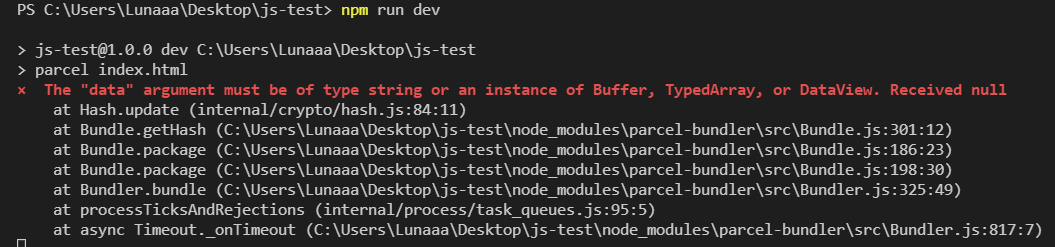 html과 css, 그리고 간단한 javascript를 이용해 웹사이트를 만들 때는 오탈자가 들어가면 그 부분에 해당하는 코드만 제대로 출력되지 않거나 시각적으로 모양이 달라지는 등 수정해야 할 부분을 비교적 쉽게 찾을 수 있다. 그런데 npm 에서 parcel-bundler를 5분 전에 설치하고 이제 막 응용을 해보려고 하는 참이었는데 터미널에 error!가 뜨면서 브라우저 환경에서도 Build Error가 발생하였다.