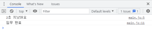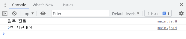 콜백함수를 이용해서 뒤이어 오는 '임무 완료'의 실행위치를 보장해주면 의도한 대로 출력이 가능하다.