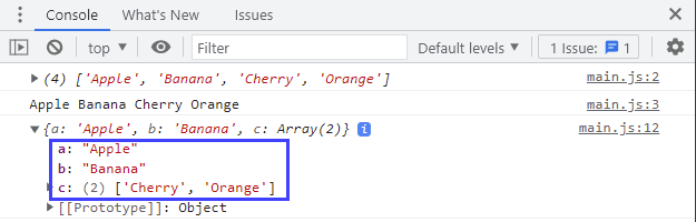 console.log(...fruits) // 전개연산자