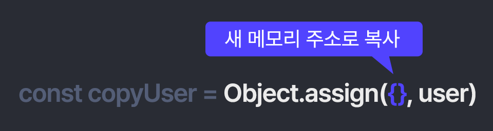 assign메소드에서 대상객체에 빈 객체를 넣어 새로운 메모리 주소로 복사하는 방법