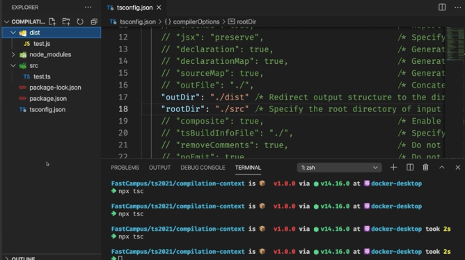 3️⃣ test.ts파일이 outDir(dist폴더)와 함께 생성됨