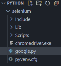 chromedriver를 다운로드 받은 후 selenium폴더 내에 가져오기 -> 같은 위치에 google.py파일 생성