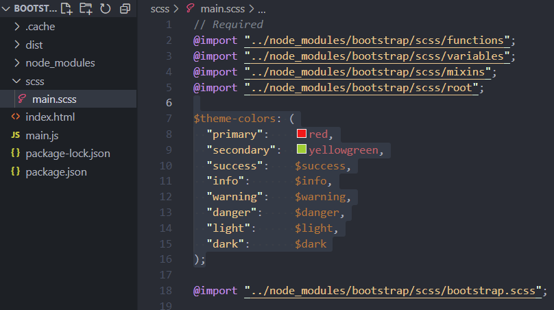 3-2. main.scss에서 bootstrap.scss파일 연동