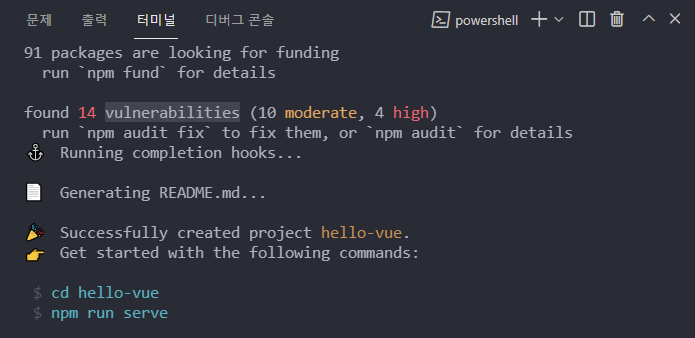 cd hello-vue : 디렉토리가 hello-vue로 생성되었고
